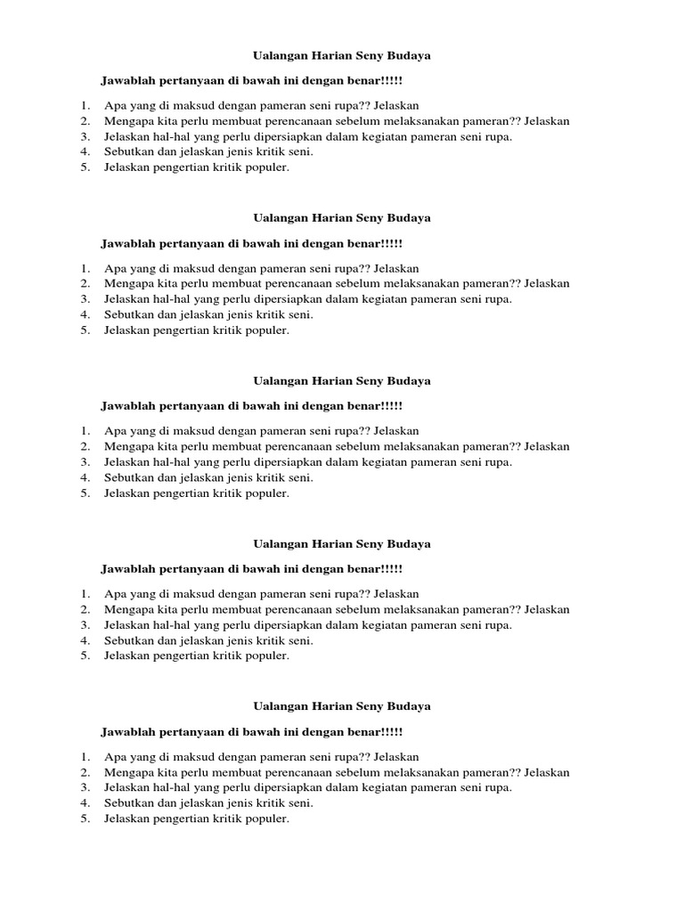 Soal Essay Tentang Kritik Karya Seni Rupa Tulisan from s1.studylibid.com Maybe you would like to learn more about one of these? Check spelling or type a new query. Pertanyaan tentang kritik seni rupa. We did not find results for: